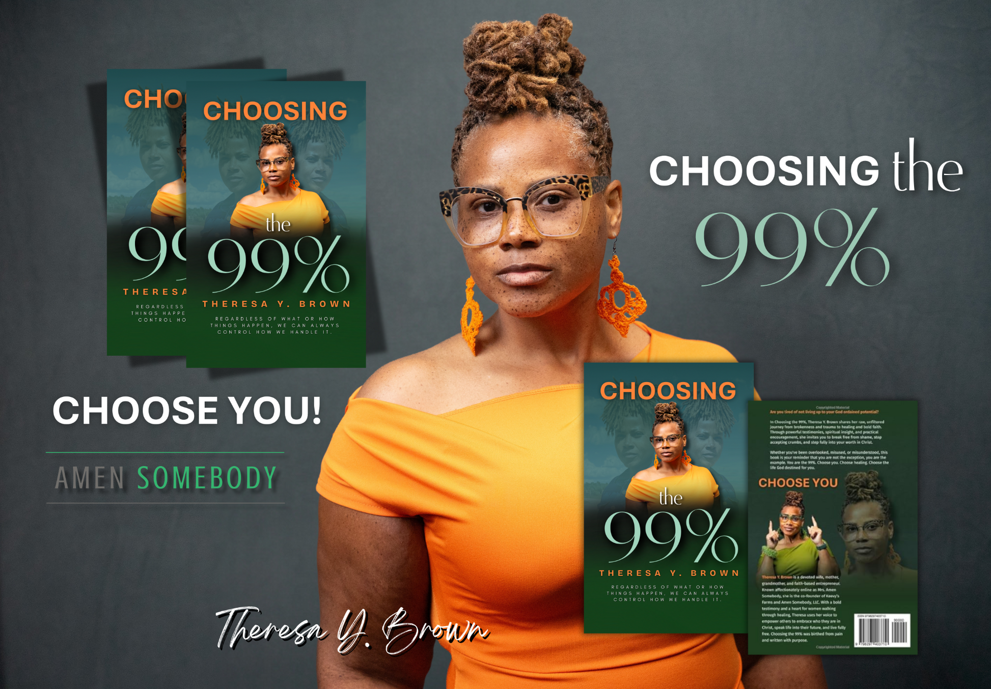 In Choosing the 99%, Theresa Y. Brown shares her unshakable journey from brokenness to breakthrough, and shows you how to let go of the 1% that holds you back so you can embrace the 99% of God’s love, purpose, and freedom waiting for you.
