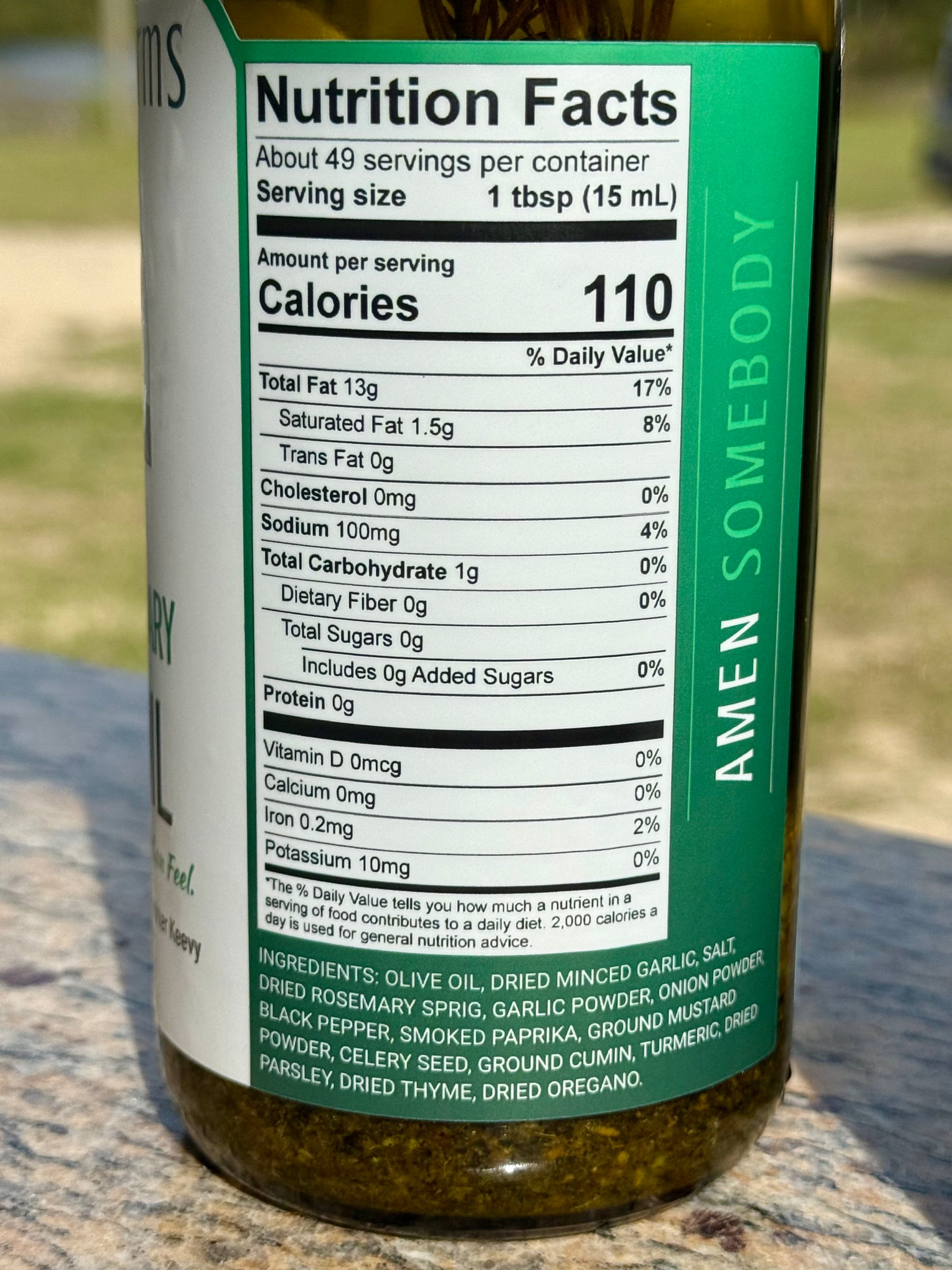Indulge in the exquisite flavors of Keevy’s Farms Garlic Rosemary Olive Oil. This handcrafted culinary delight combines the finest olive oil with the robust essence of garlic and aromatic rosemary. Each bottle is meticulously crafted on our farm, ensuring a blend that captures the essence of nature’s bounty.